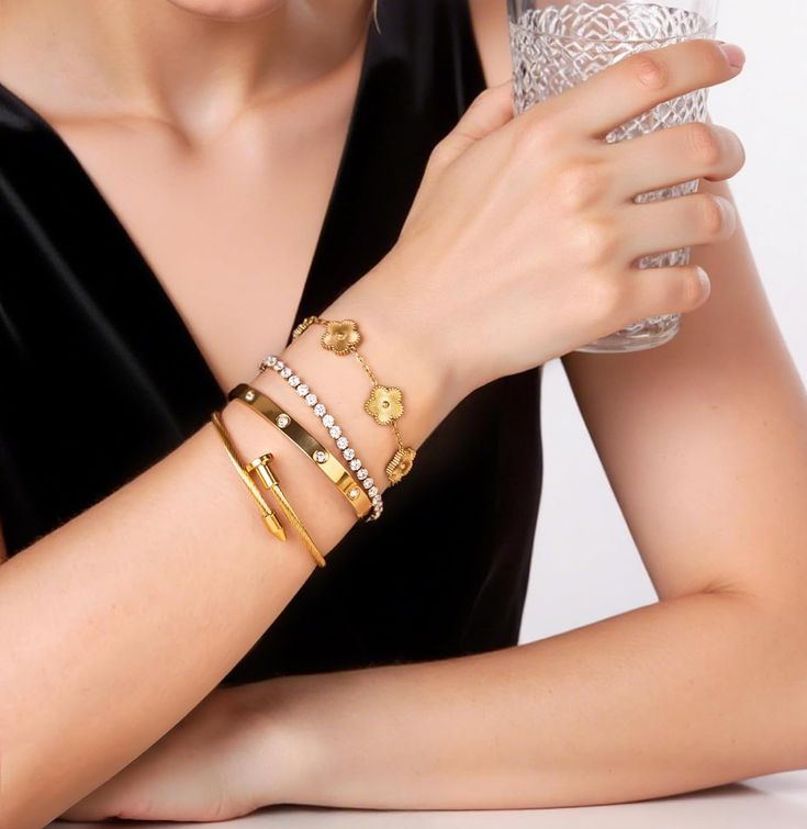 2 Pcs Black 14K Gold Plated Stackable Bracelets