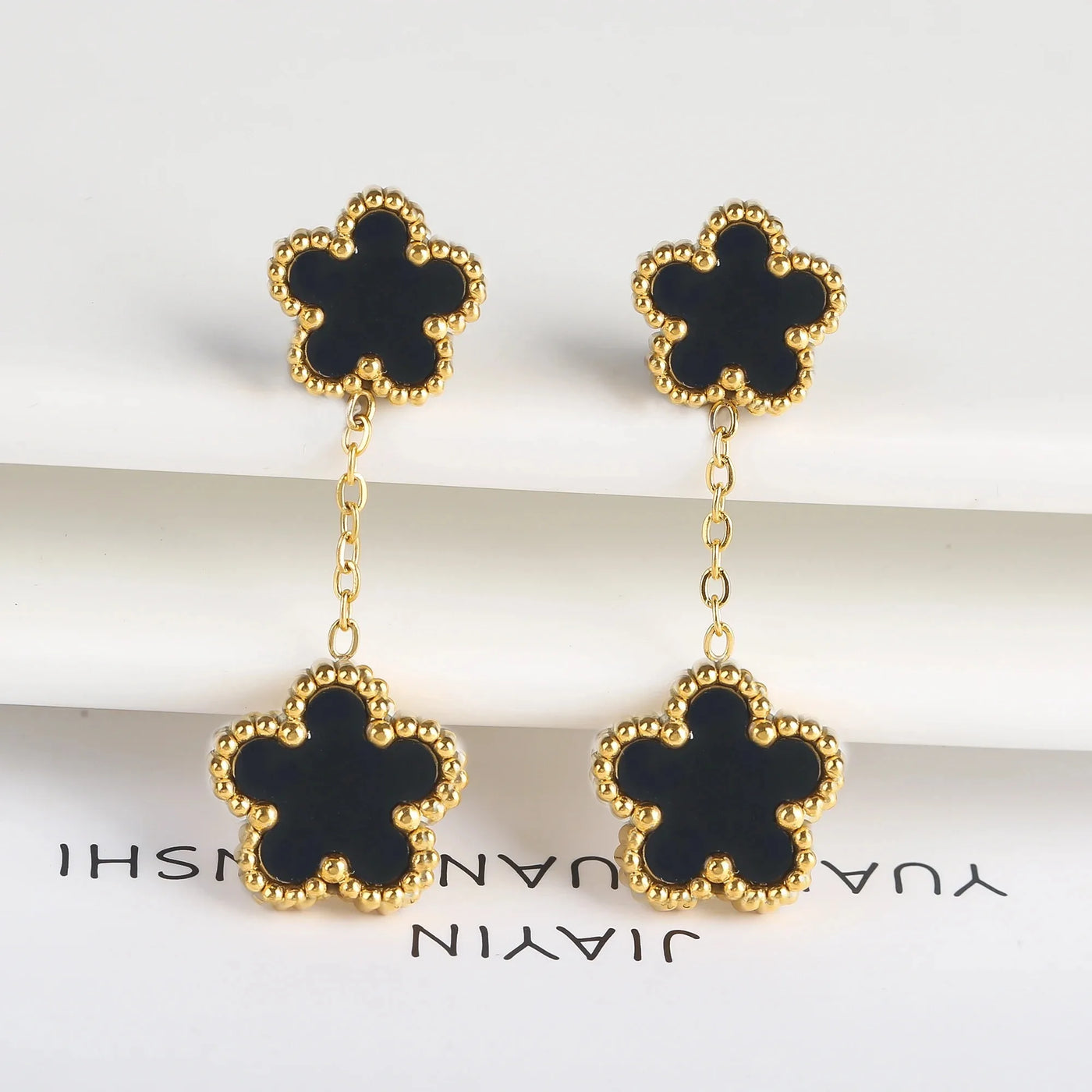 Lucky 5 Clover Black Earrings