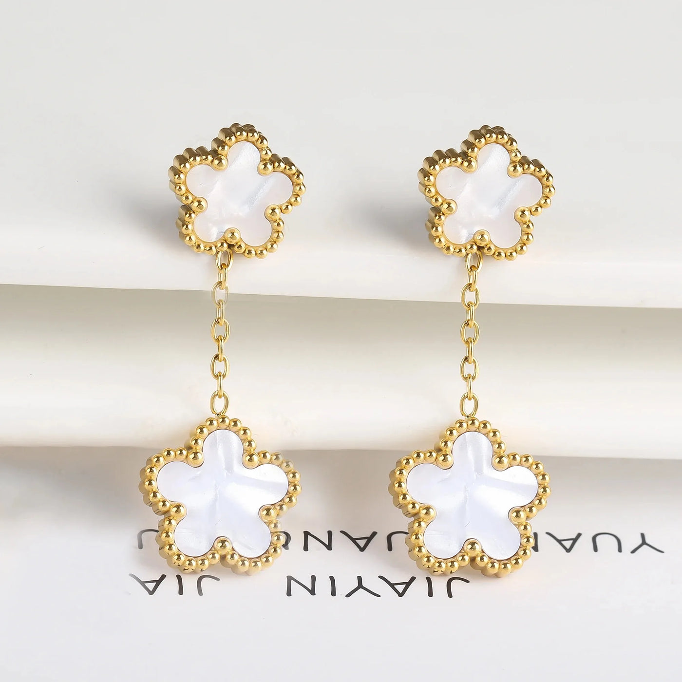 Lucky 5 Clover White Earrings