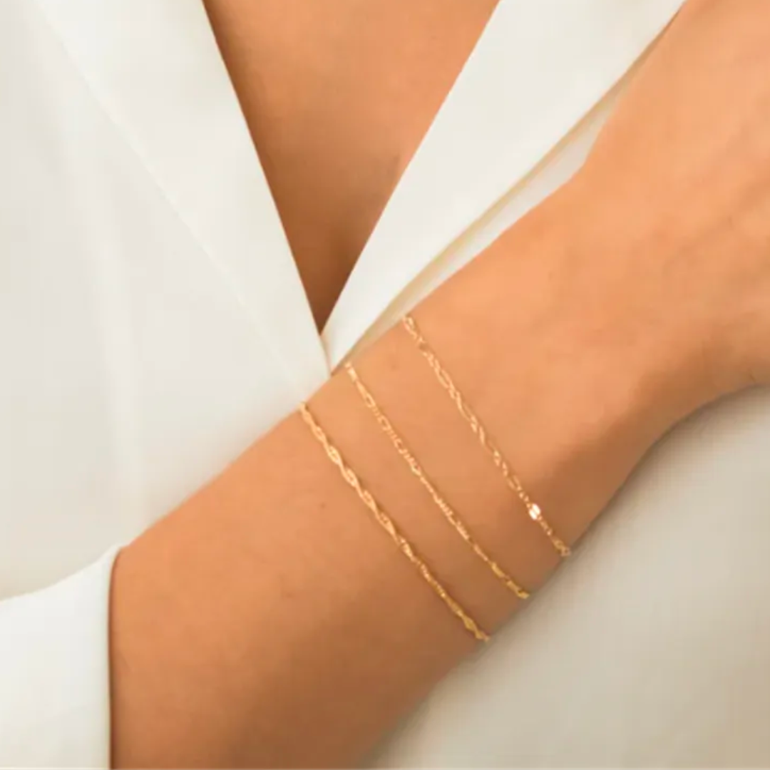 The 14k gold filled chain bracelet is a stunning piece of jewellery that combines the elegance of gold with the durability of a base metal. The chain is then coated with a thick layer of 14k gold. This process creates a beautiful and long-lasting piece that has the appearance and feel of solid gold, but at a more affordable price.